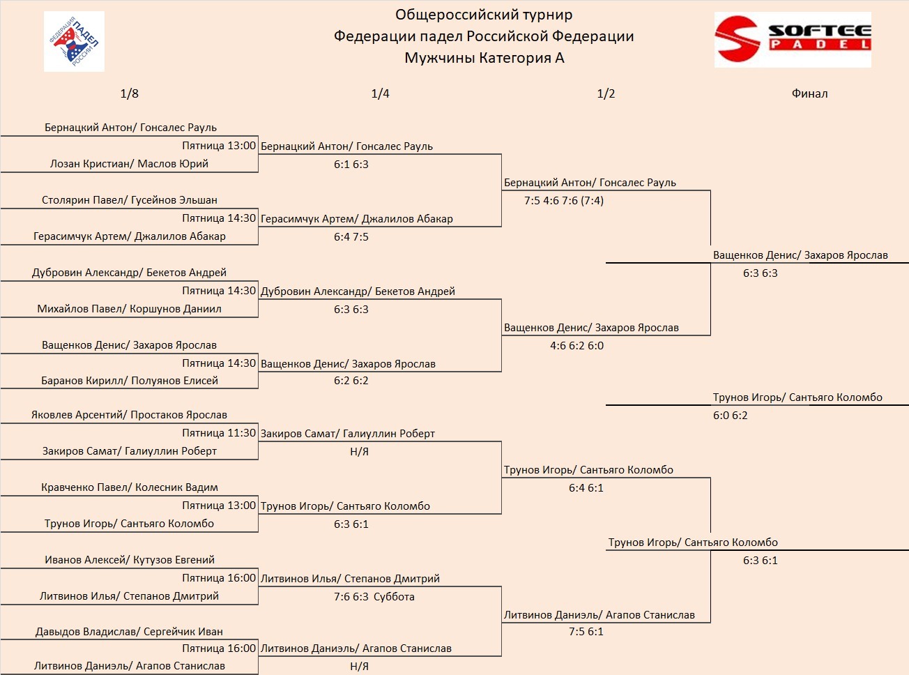 Игрок может принять участие только в одной категории, не допускается играть в разных категориях с разными партнёрами.