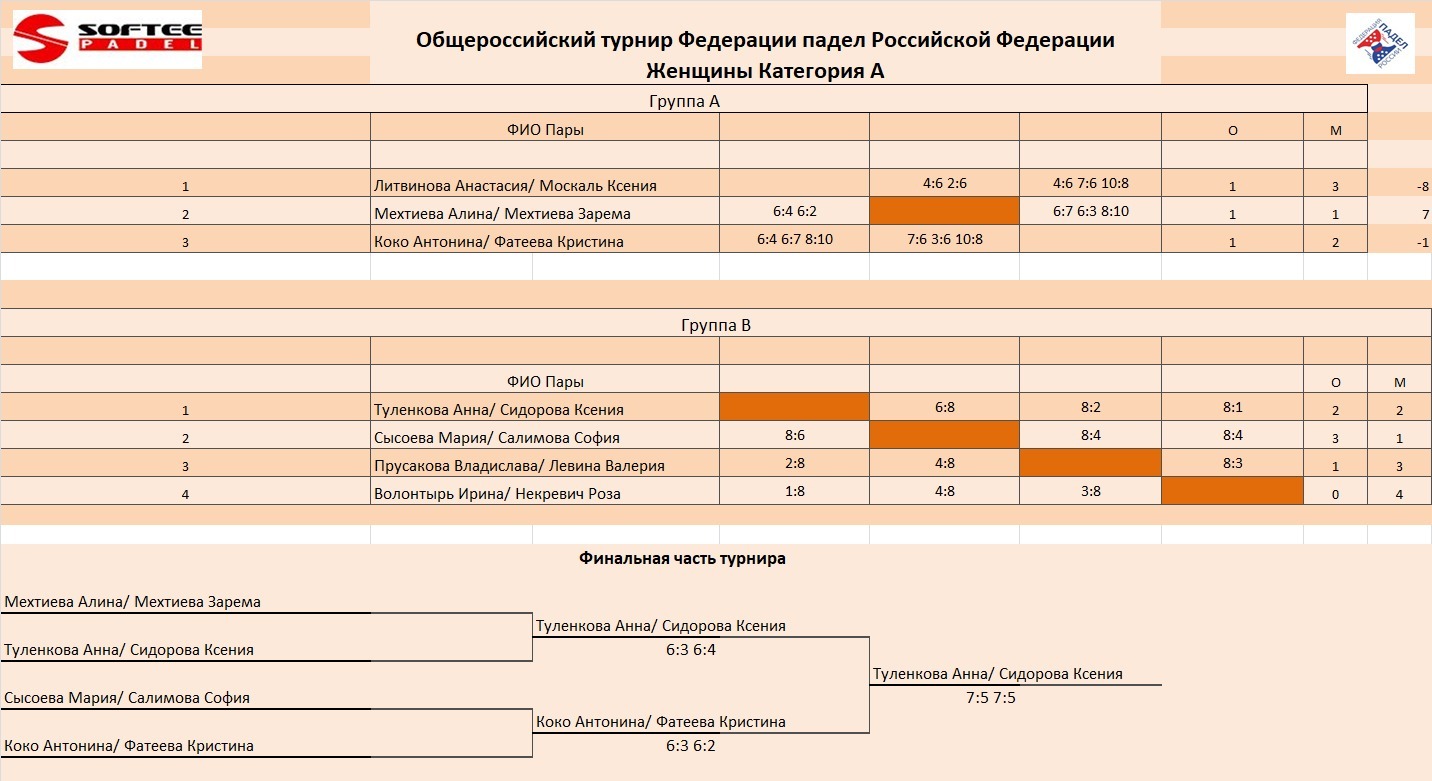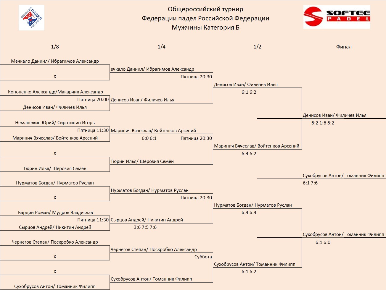Жеребьёвка участников проводится не позднее 4 дней до начала турнира. с учетом рейтинговых очков Федерации Падел РФ.